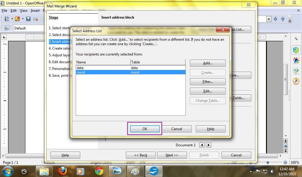 13. Selanjutnya akan muncul dialog box baru, lalu masukkan element "First name dan Address list" dengan